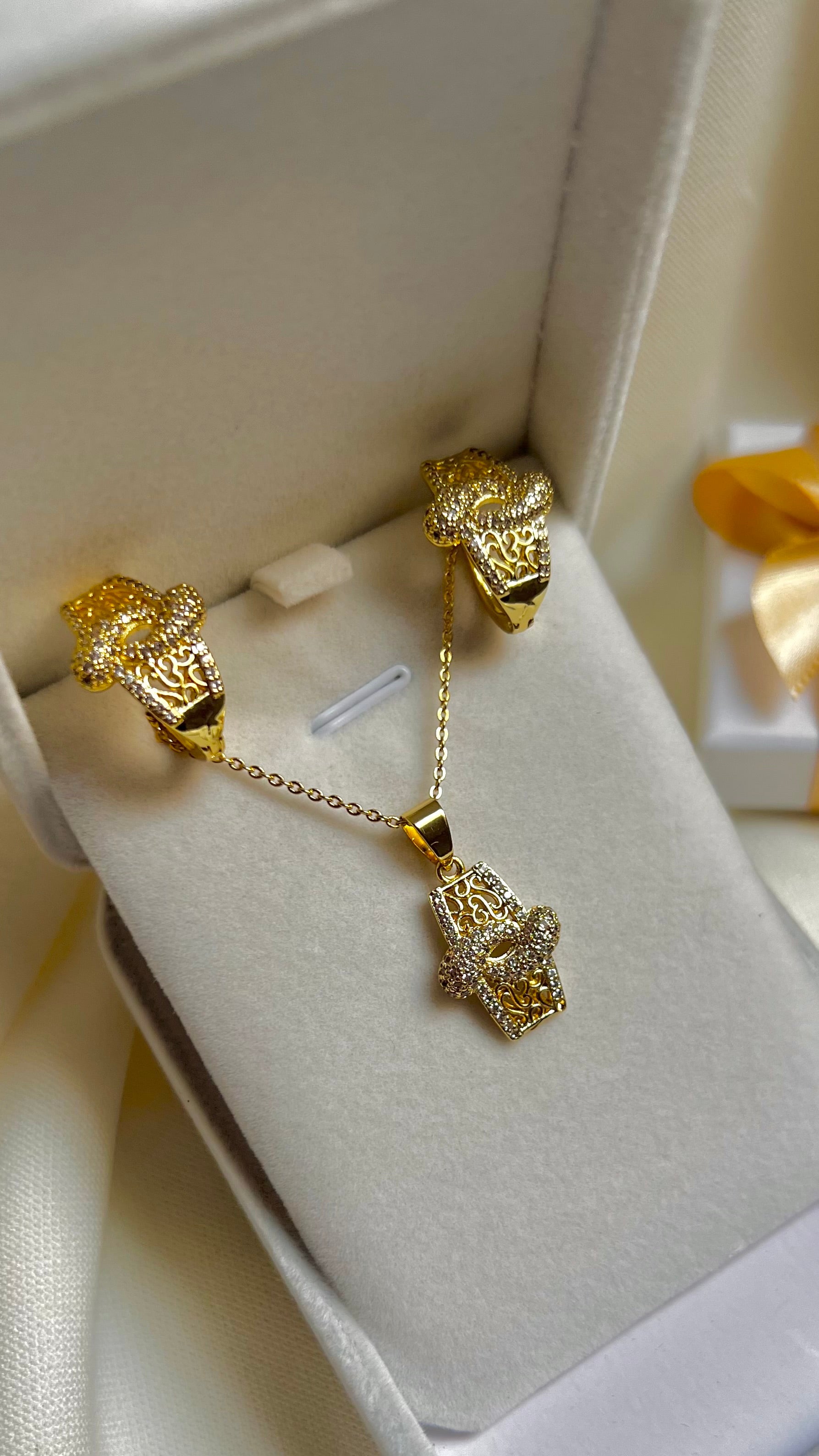 Conjunto compuesto por pendientes y collar chapados en oro de 14k